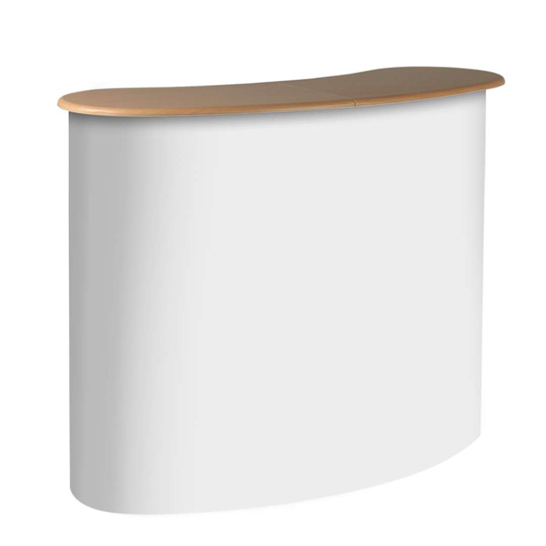 Il banchetto Pop up è una soluzione pratica e conveniente, ideale per eventi e fiere. Offre un formato di grandi dimensioni pur mantenendo un peso contenuto di soli 19 kg ed un imballaggio poco ingombrante. Si assembla in modo rapido e intuitivo con struttura stabile e ben proporzionata. È progettato per grafiche in PVC in stampa unica e presenta un elegante top termoformato color legno e ripiani interni. Completo di nastro magnetico e borsa in tela con ruote, è facile da trasportare e pronto all’uso.