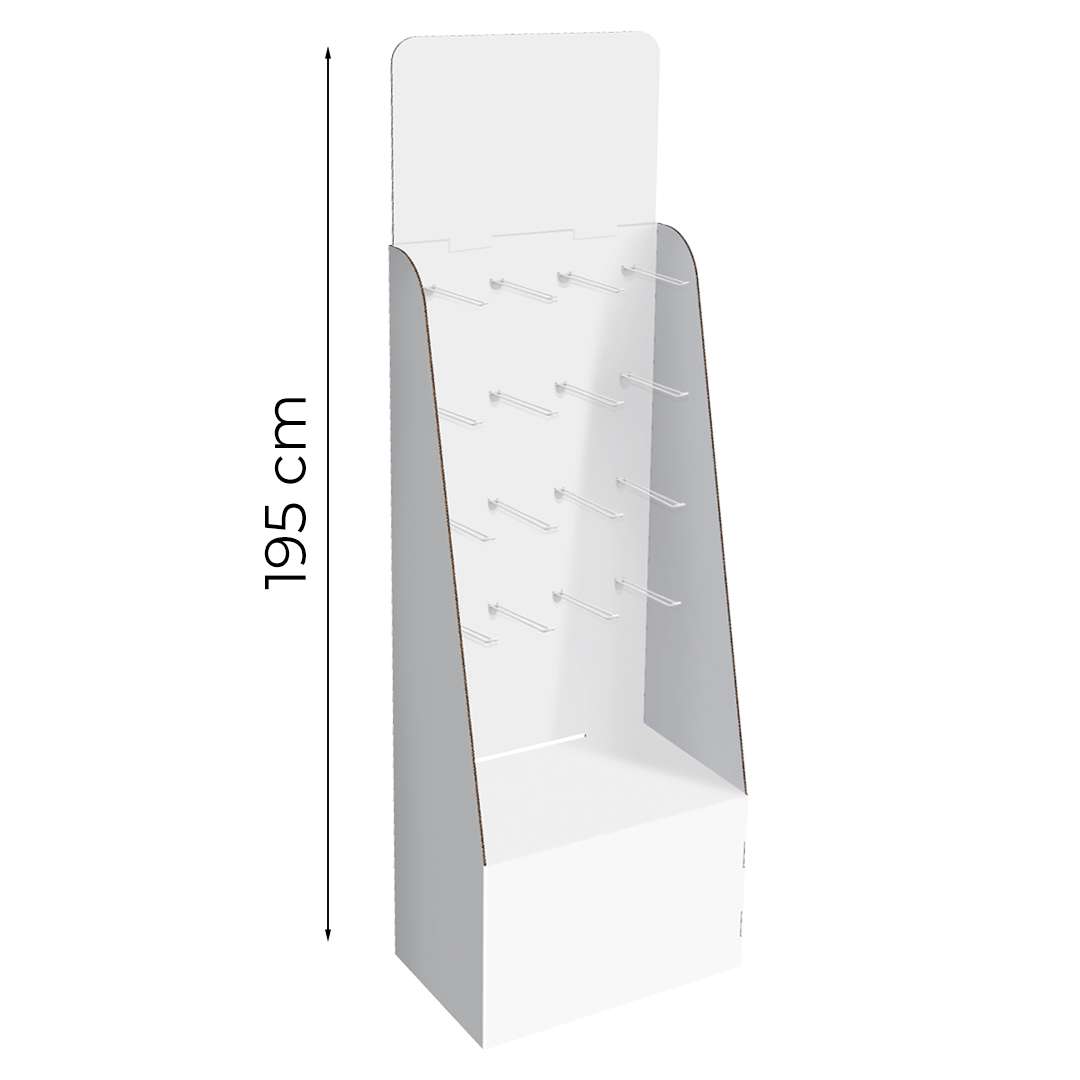 Espositore da terra con 16 ganci portablister, realizzato in cartone doppia onda da 3 mm e completamente personalizzabile con la tua grafica tramite stampa. Ideale per l’allestimento di ambienti interni, questo espositore è la soluzione perfetta per esporre prodotti in blister. La possibilità di personalizzarlo ti consente di creare un'esposizione unica, perfettamente allineata con il tuo brand e le tue esigenze di comunicazione.